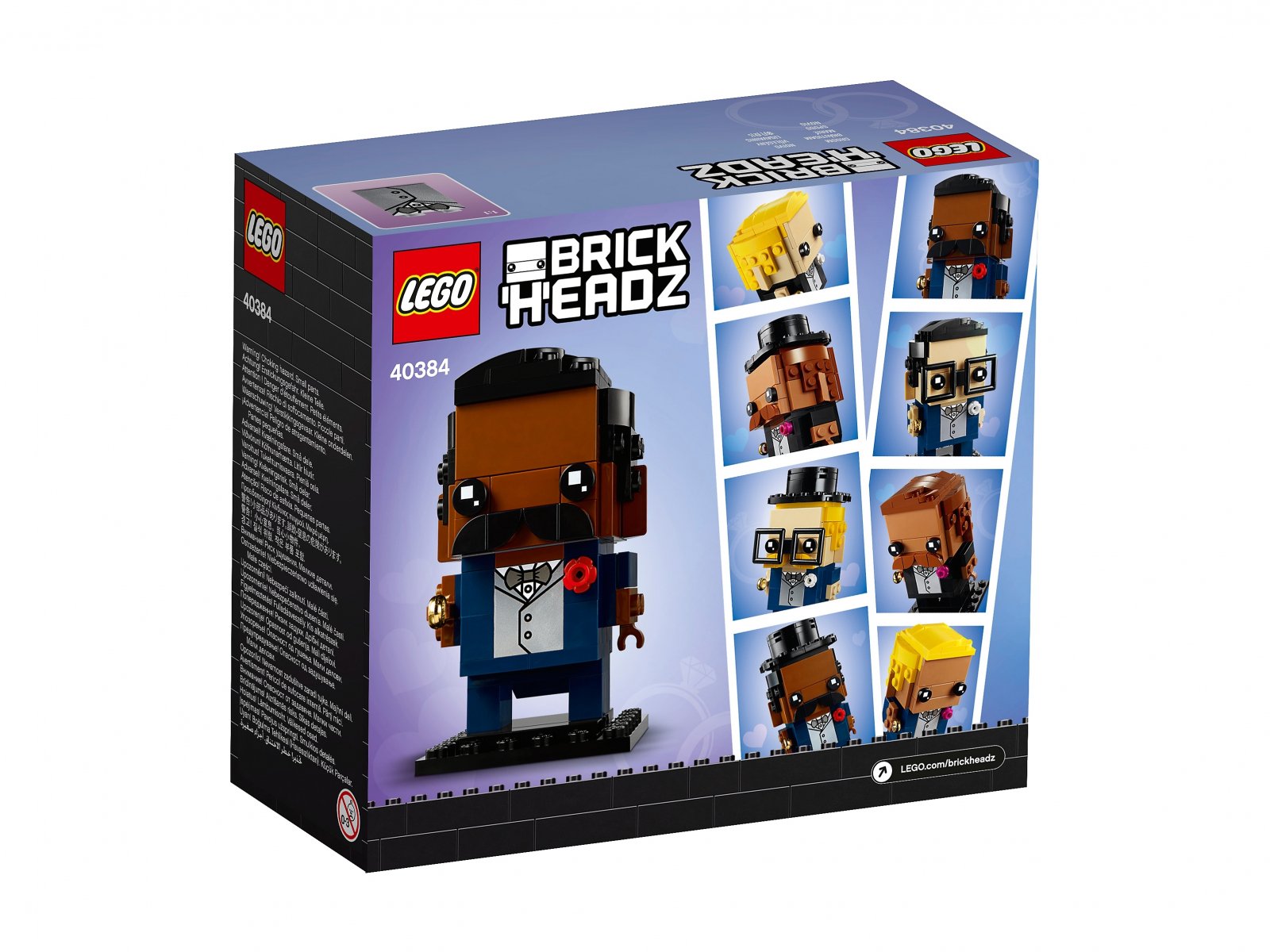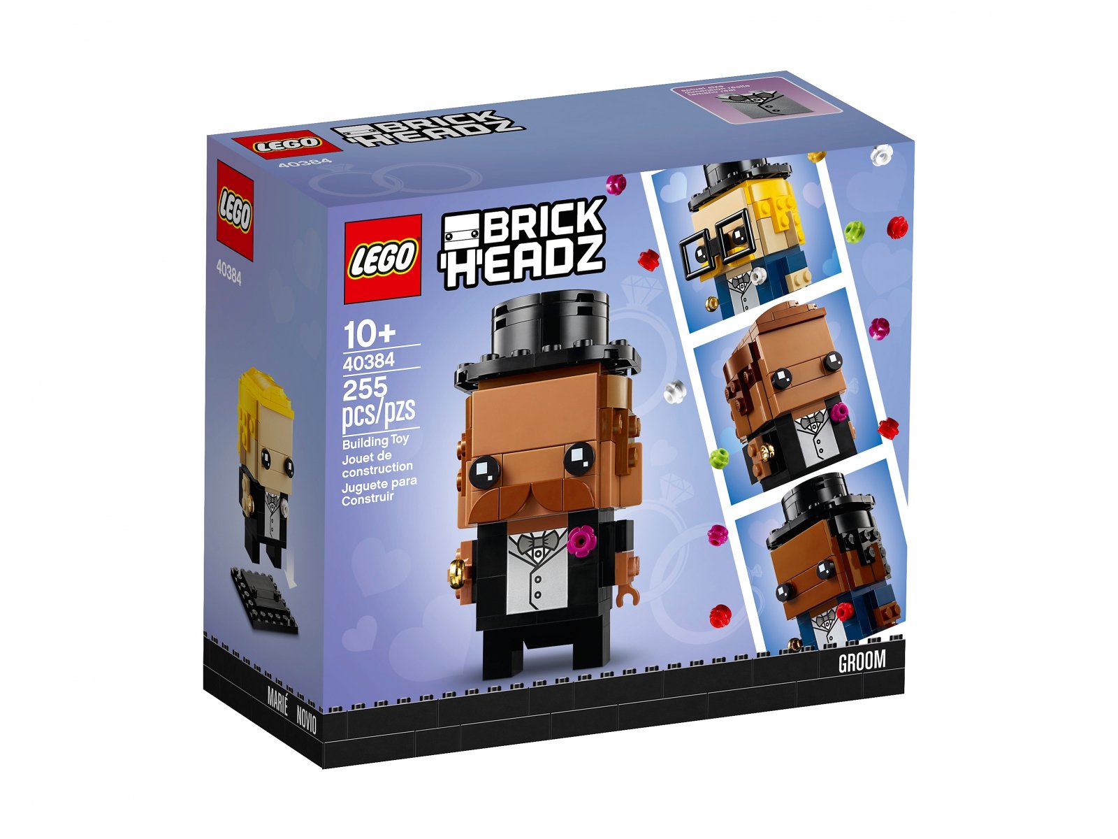 - Figurka pana młodego do zbudowania składa się z 255 elementów i ma ok. 8 cm wysokości, a do tego tworzy świetną parę z panną młodą LEGO® BrickHeadz™ z zestawu 40383.