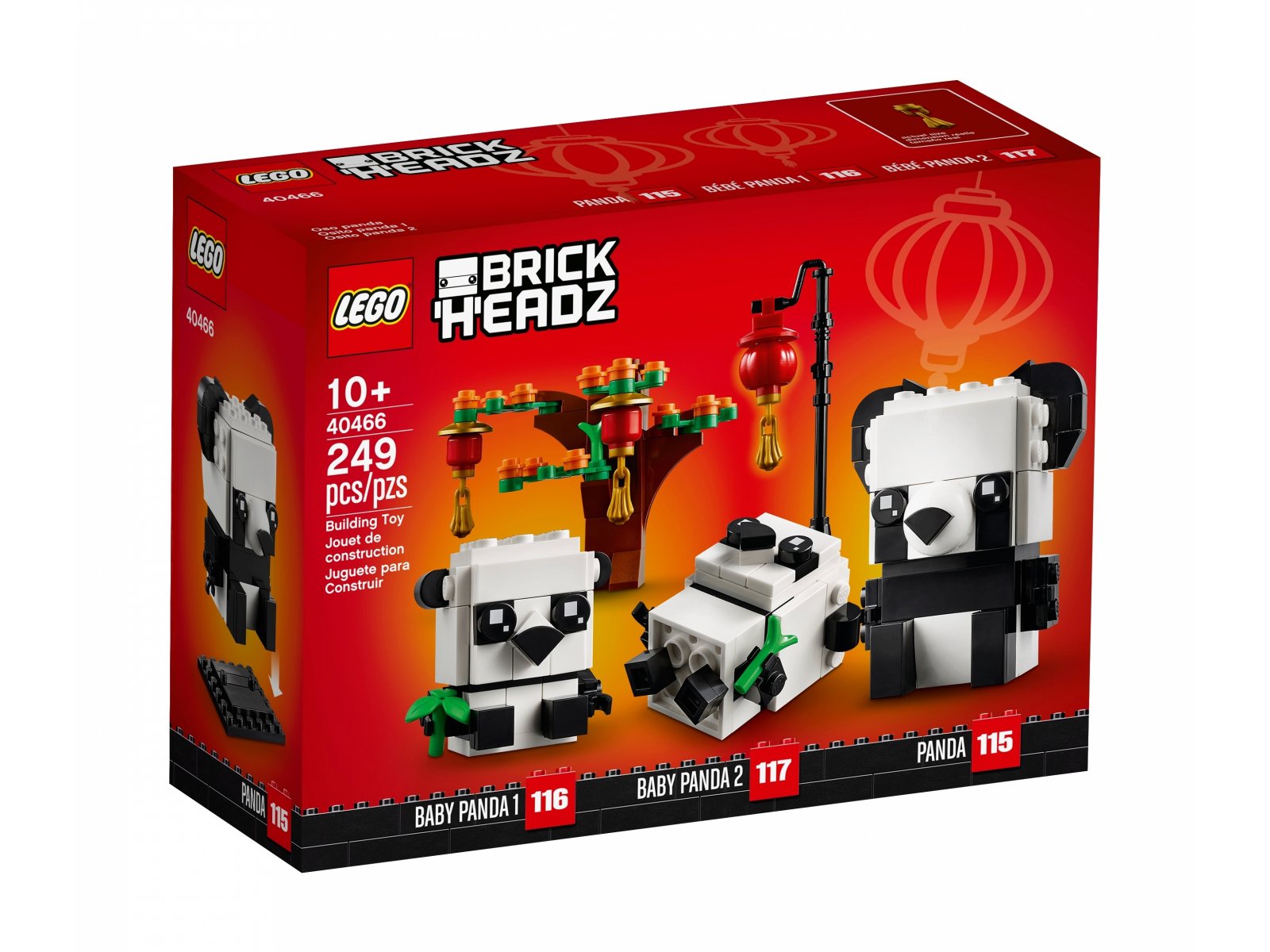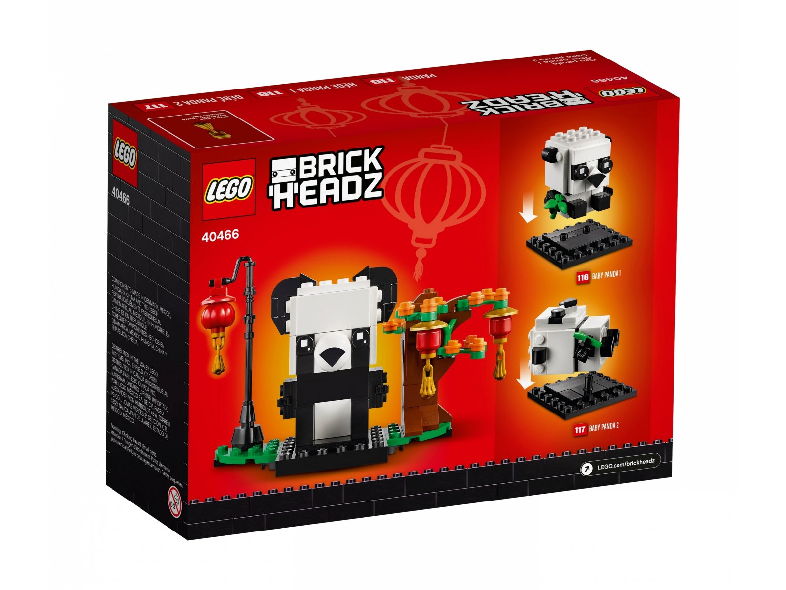 - Uroczy zestaw LEGO BrickHeadz™ 40466 Pandy na chiński Nowy Rok przyniesie szczęście każdemu fanowi LEGO®, któremu go podarujesz. Każda panda ma własną podstawkę, więc modele możesz postawić na półce razem lub osobno.