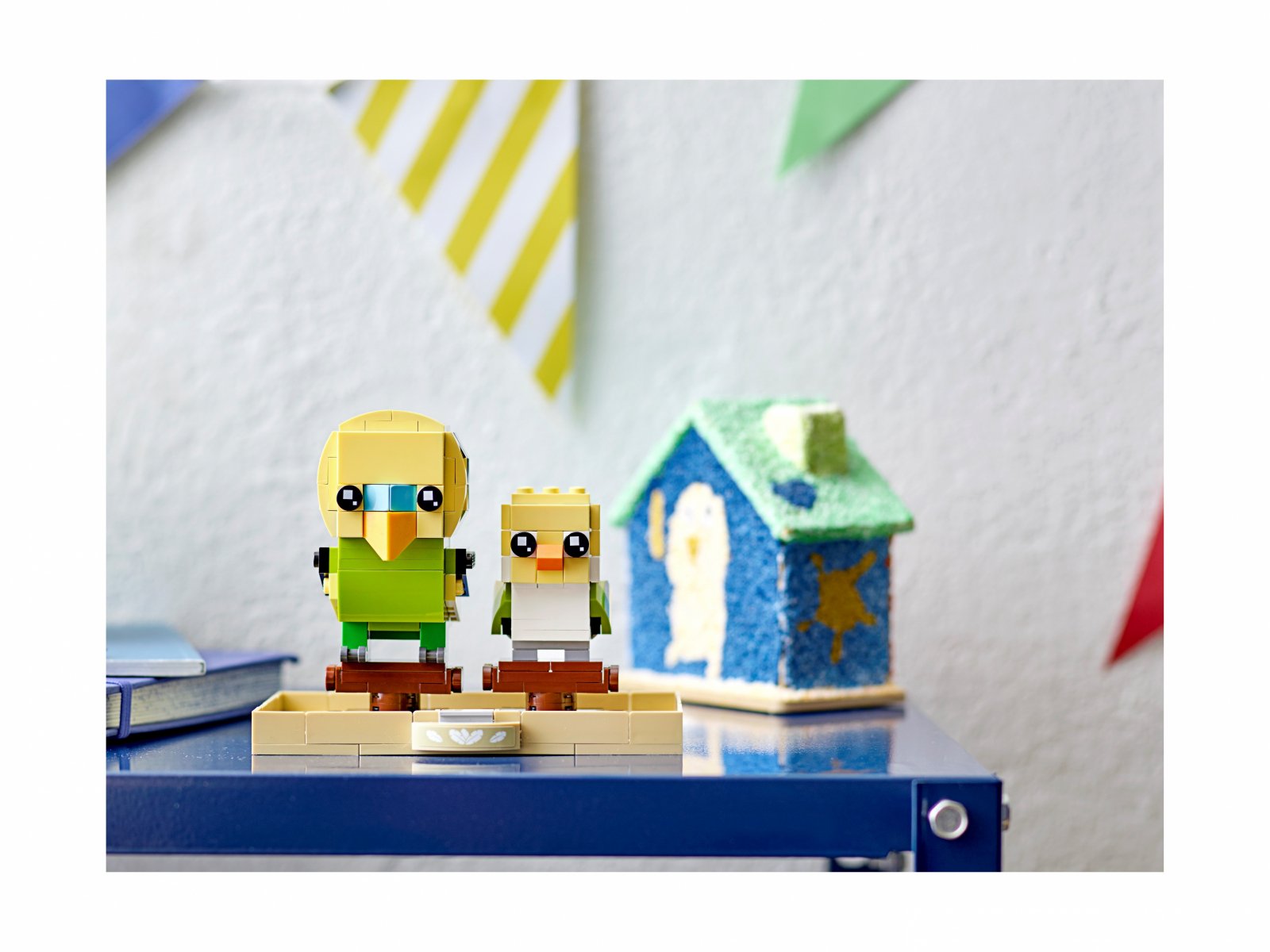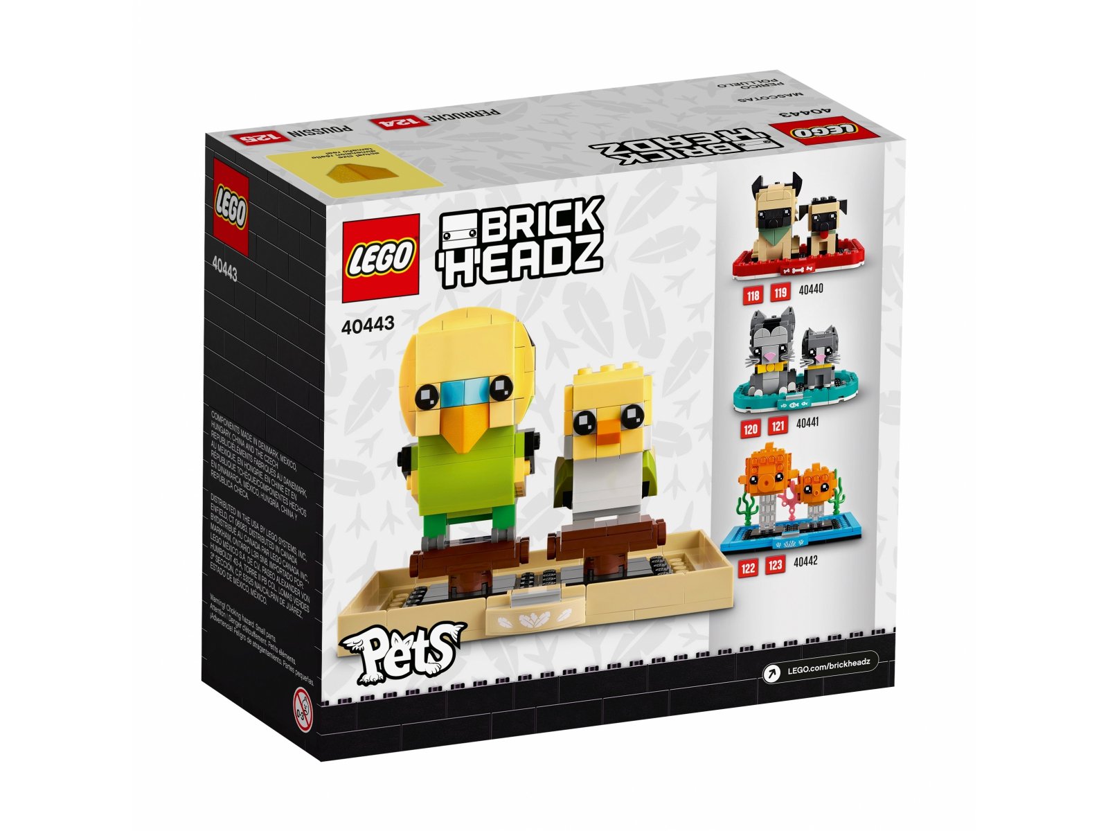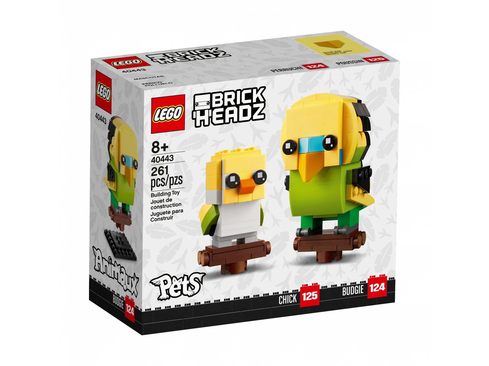 - Kolekcjonerski zestaw konstrukcyjny z uroczymi modelami LEGO® BrickHeadz™ papużki i pisklęcia, które siedzą na zbudowanych z klocków stojaczkach pasujących do podstawki stylizowanej na dno klatki.