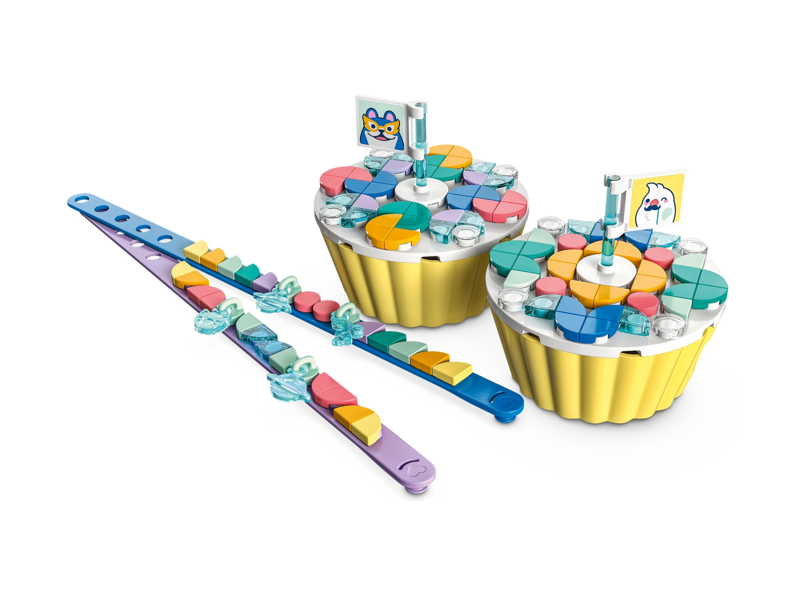 - Kreatywne dekorowanie – zaskocz każdego fana rękodzieła w wieku od sześciu lat tym zabawnym zestawem LEGO® DOTS Pełny zestaw imprezowy (41806), który zawiera sześć babeczek, sześć bransoletek, sześć chorągiewek i wiele innych dodatków