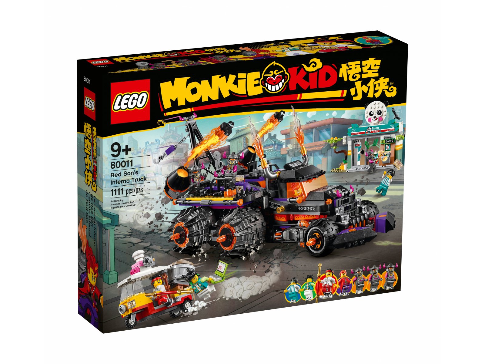 - Zestaw 80011 LEGO® Monkie Kid™ to wyjątkowa okazja do zabawy piekielnym pojazdem Red Sona, który uwalnia wbudowaną wyścigówkę. Aby podkręcić emocje, w zestawie znalazł się też sklep Szybka Panda oraz autoriksza Pigsy’ego.