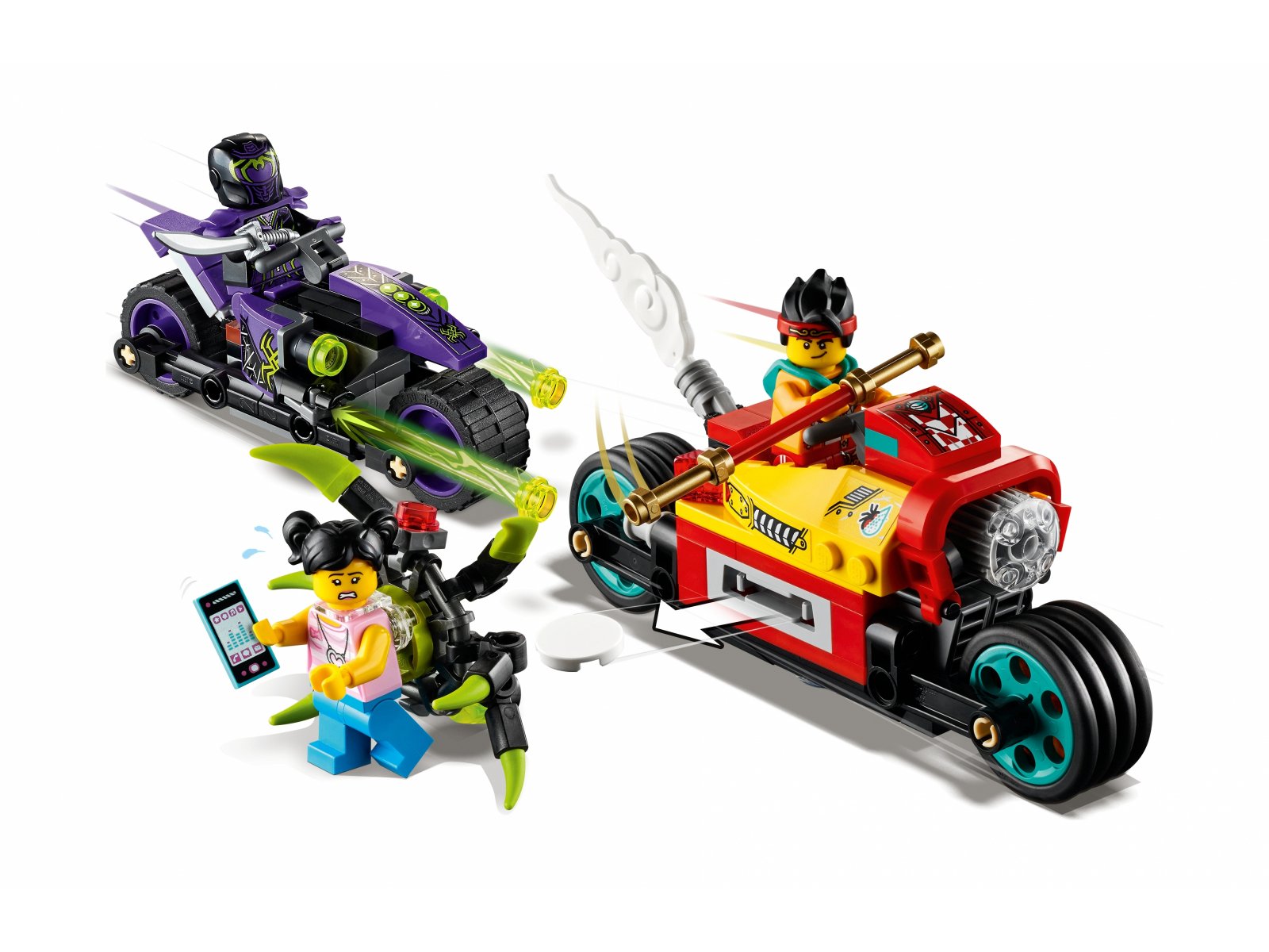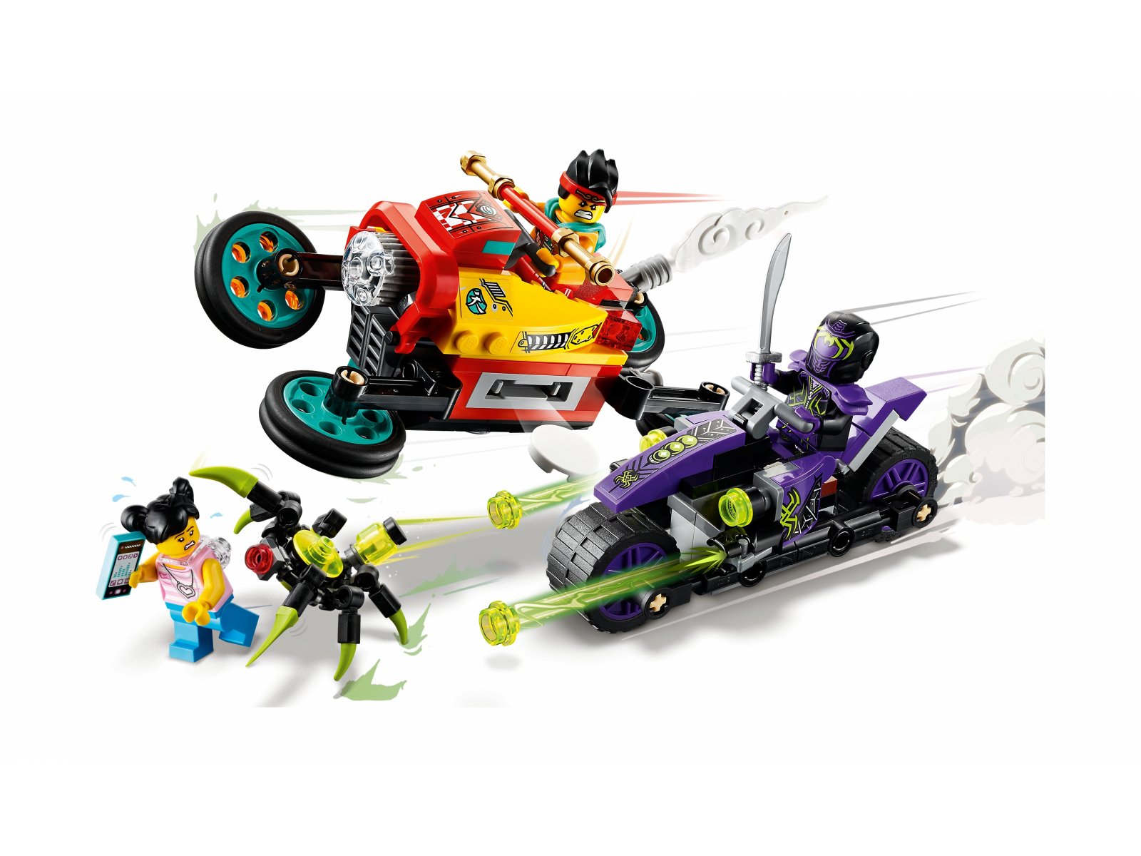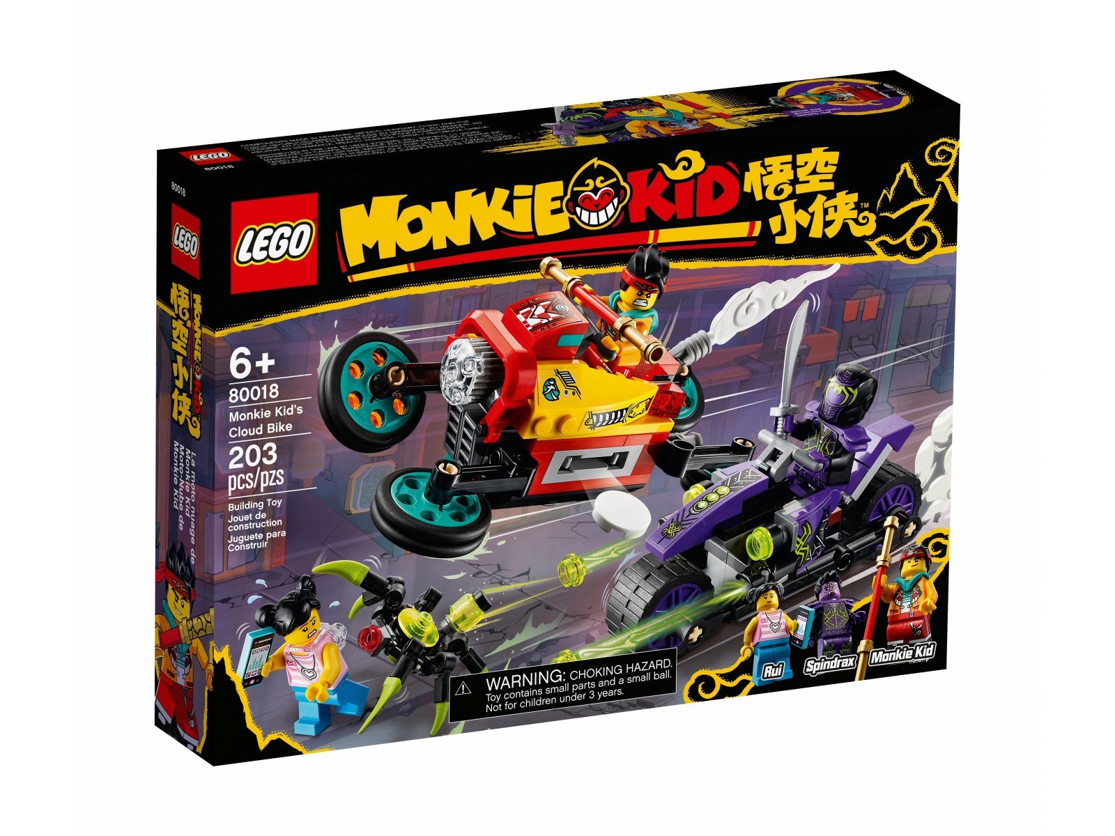- Zestaw z serii LEGO® Monkie Kid™ (80018) pozwoli małym bohaterom pędzić zabawkowym motocyklem, by uratować miasto przed Spider Bikerem i robotycznymi pająkami.