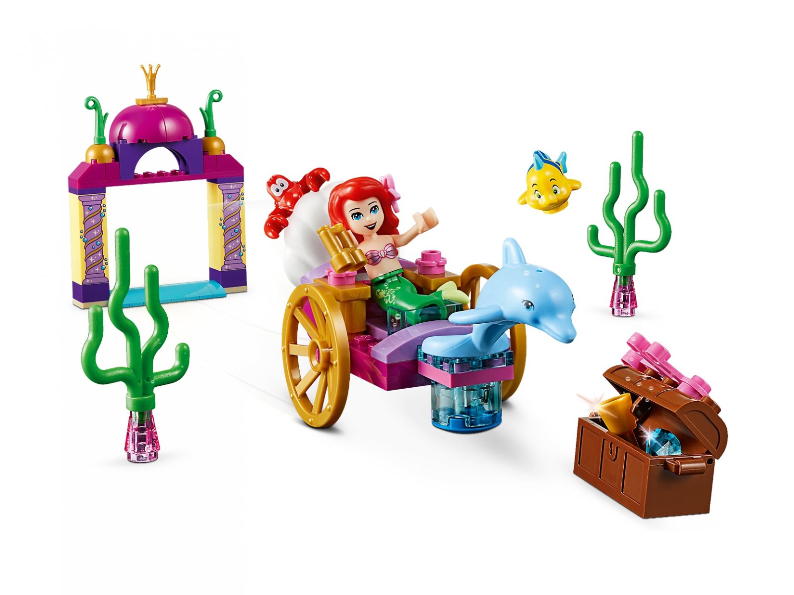 - W zestawie minilaleczka księżniczki Disneya Arielki oraz figurki Florka, Sebastiana i delfina.