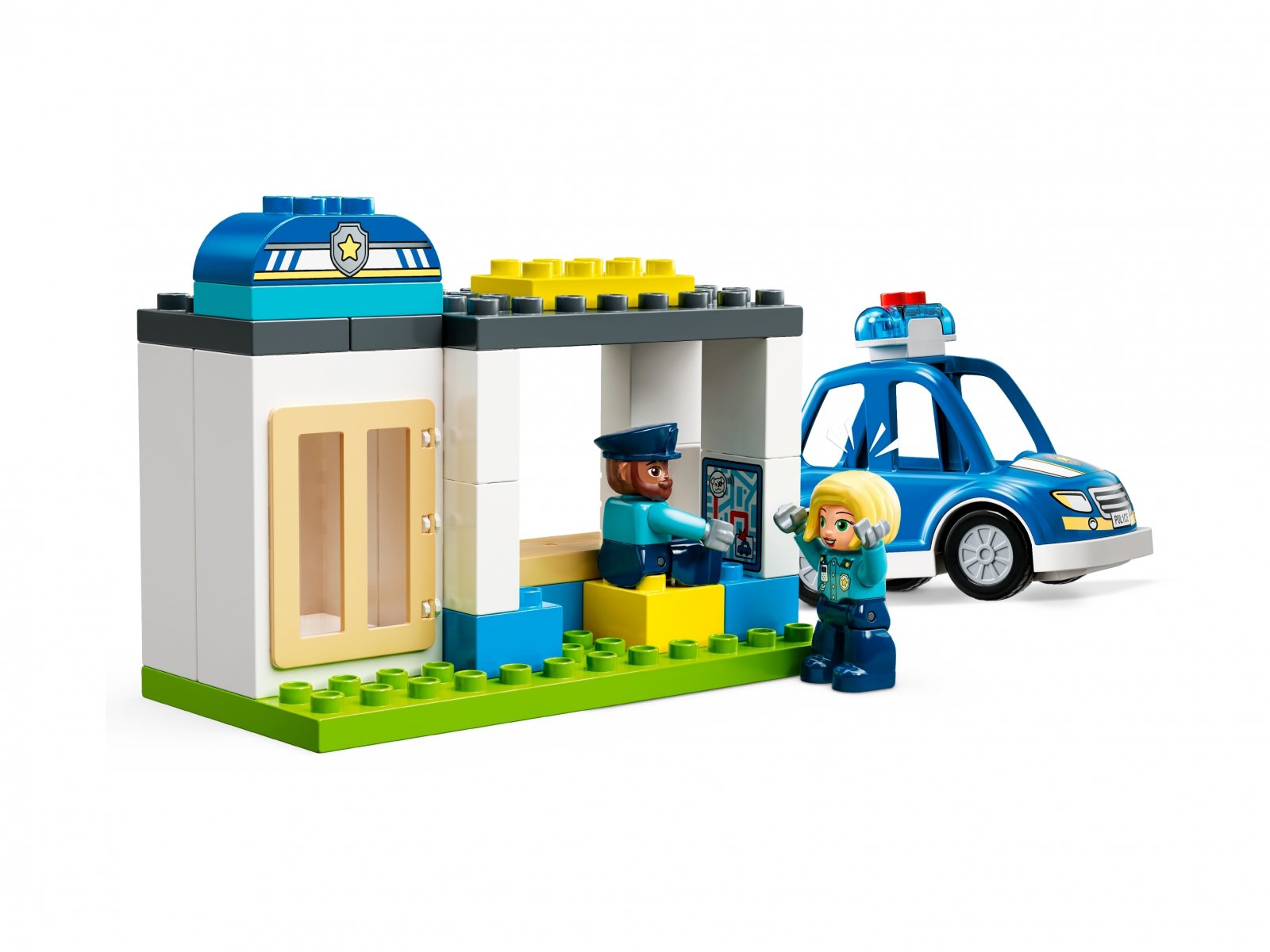 - Policyjna zabawka dla najmłodszych — w zestawie LEGO® DUPLO® Posterunek policji i helikopter (10959) znajdziesz postacie i pojazdy inspirujące najmłodszych policjantów do pomysłowej zabawy