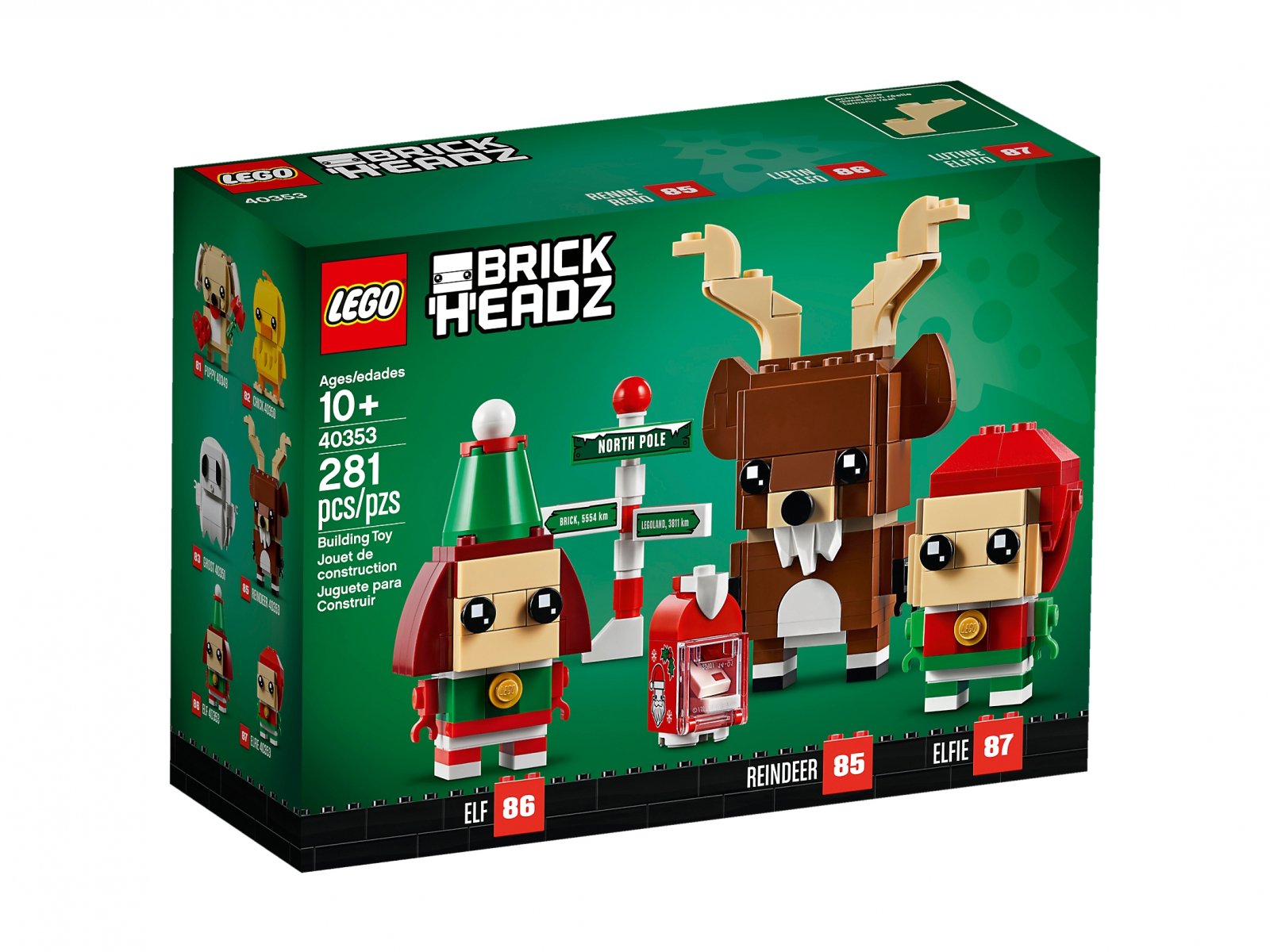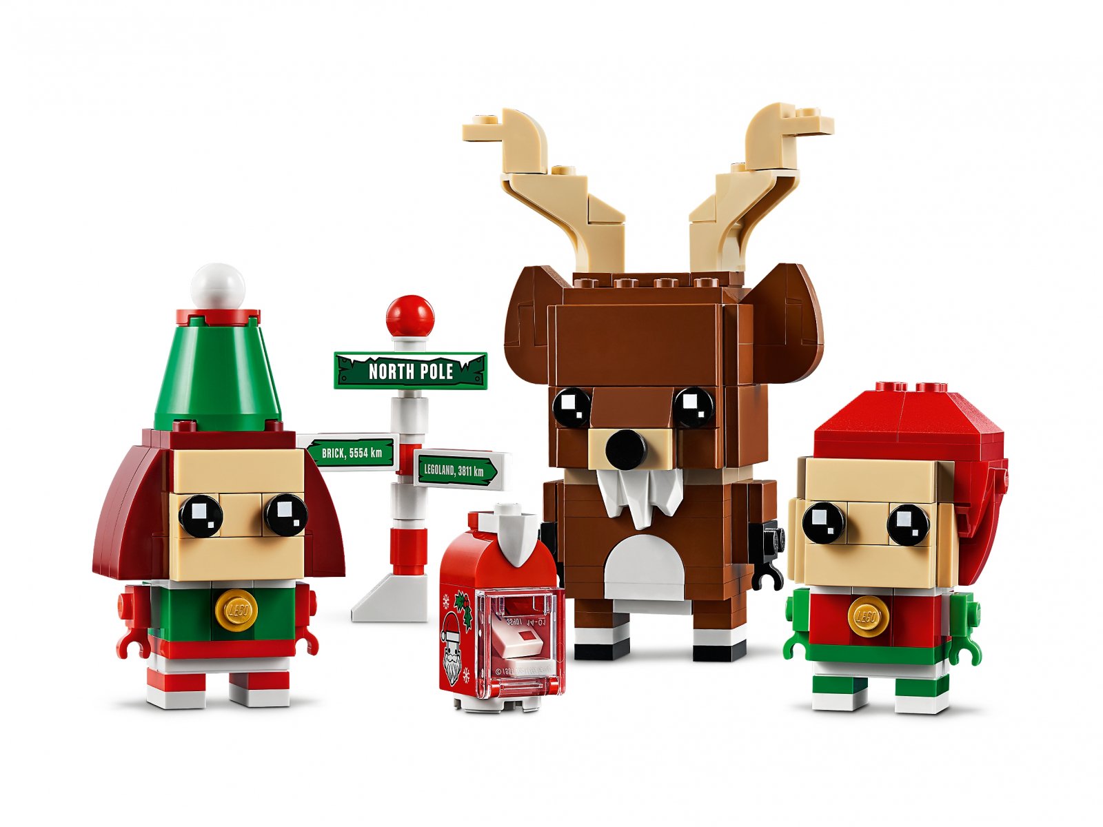 - Renifer, elf i elfka z serii LEGO® Brickheadz™ do zbudowania na podstawkach LEGO.