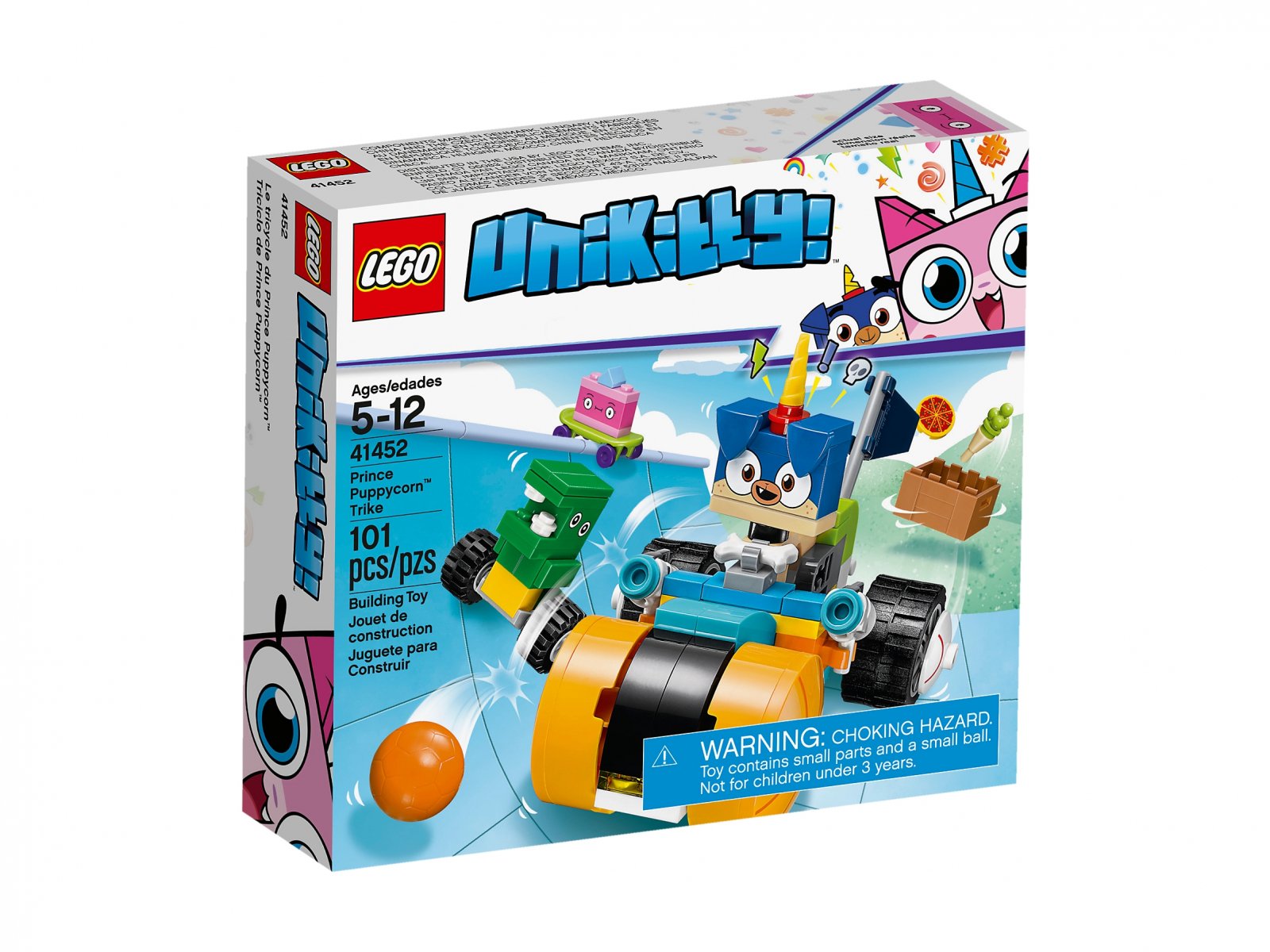 Przeżyj ponownie ulubione sceny z najbardziej radosnego, błyszczącego i kolorowego serialu telewizyjnego na antenie w zestawie LEGO® Unikitty™! 41452 Rowerek Księcia Piesia Rożka™. Ten ciekawy pojazd ma dwa miotacze do strzelania klockami błyszczącej materii, kość, flagę, ogromną, toczącą się piłkę do koszykówki zamiast przedniego koła oraz tylne koła z nadrukiem piłek baseballowych. W zestawie jest też skrzynia smakołyków i trzy postacie z serialu do zbudowania.