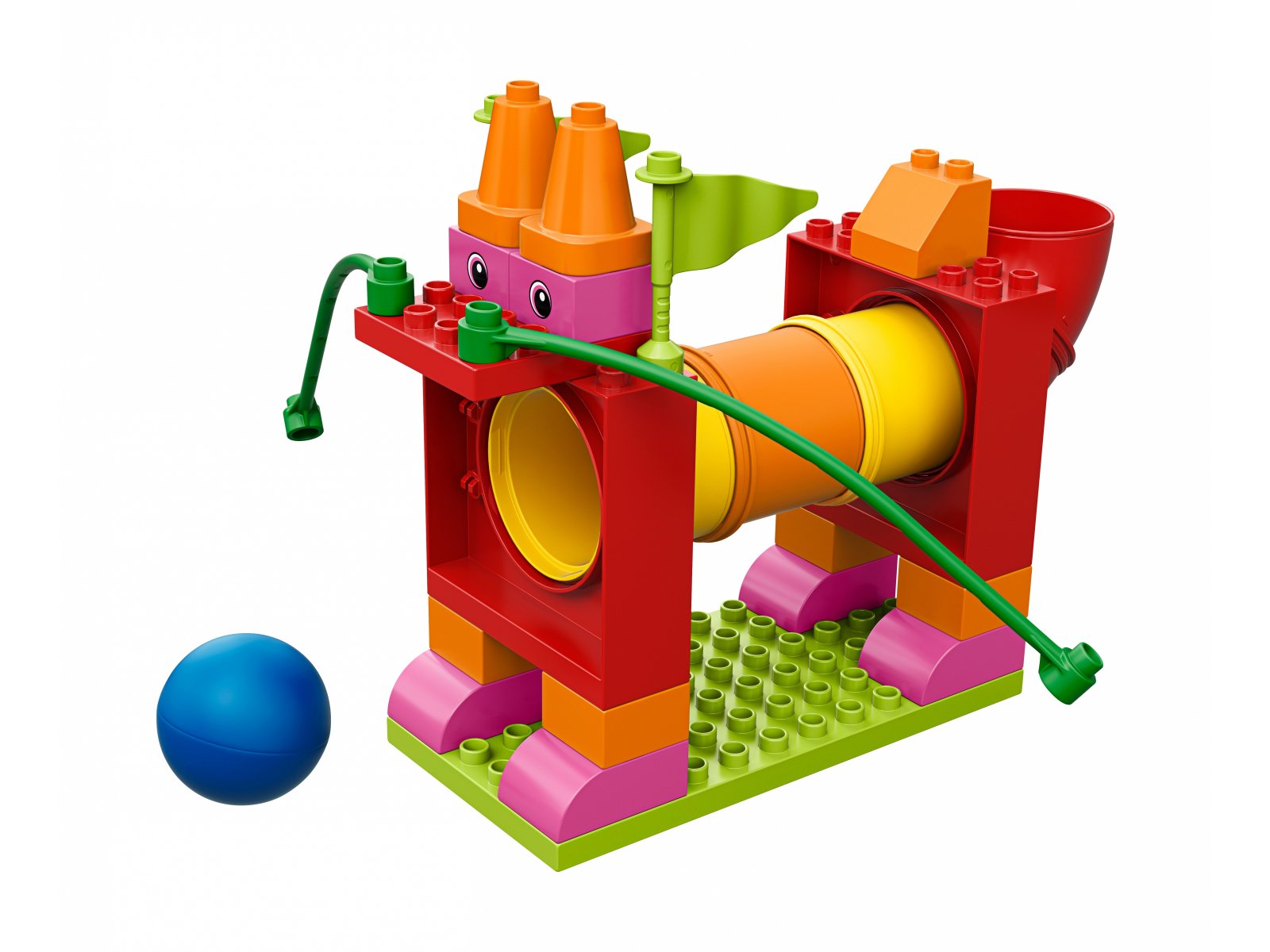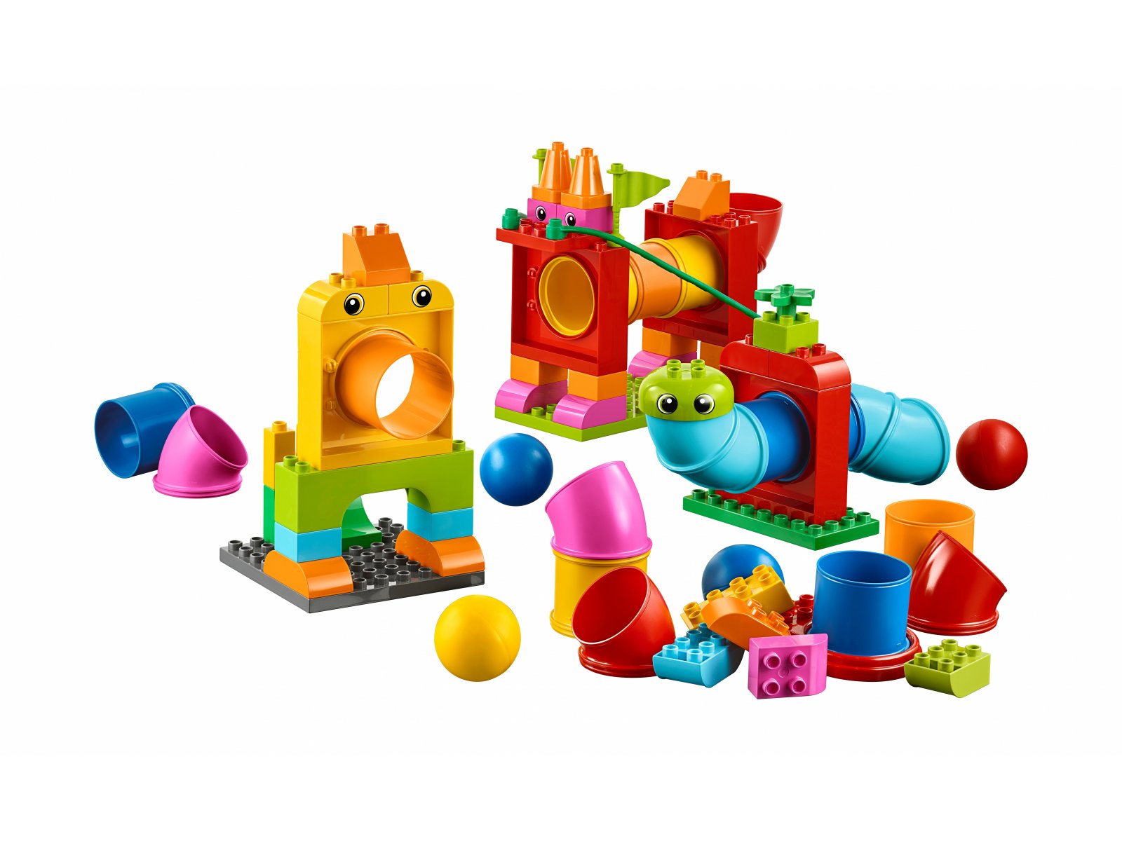 - 150 elementów LEGO® DUPLO®, w tym kolorowe rury, klocki, 6 kulek, drzwi i koszyki to dla przedszkolaków gwarancja kreatywnej zabawy połączonej z nauką.
