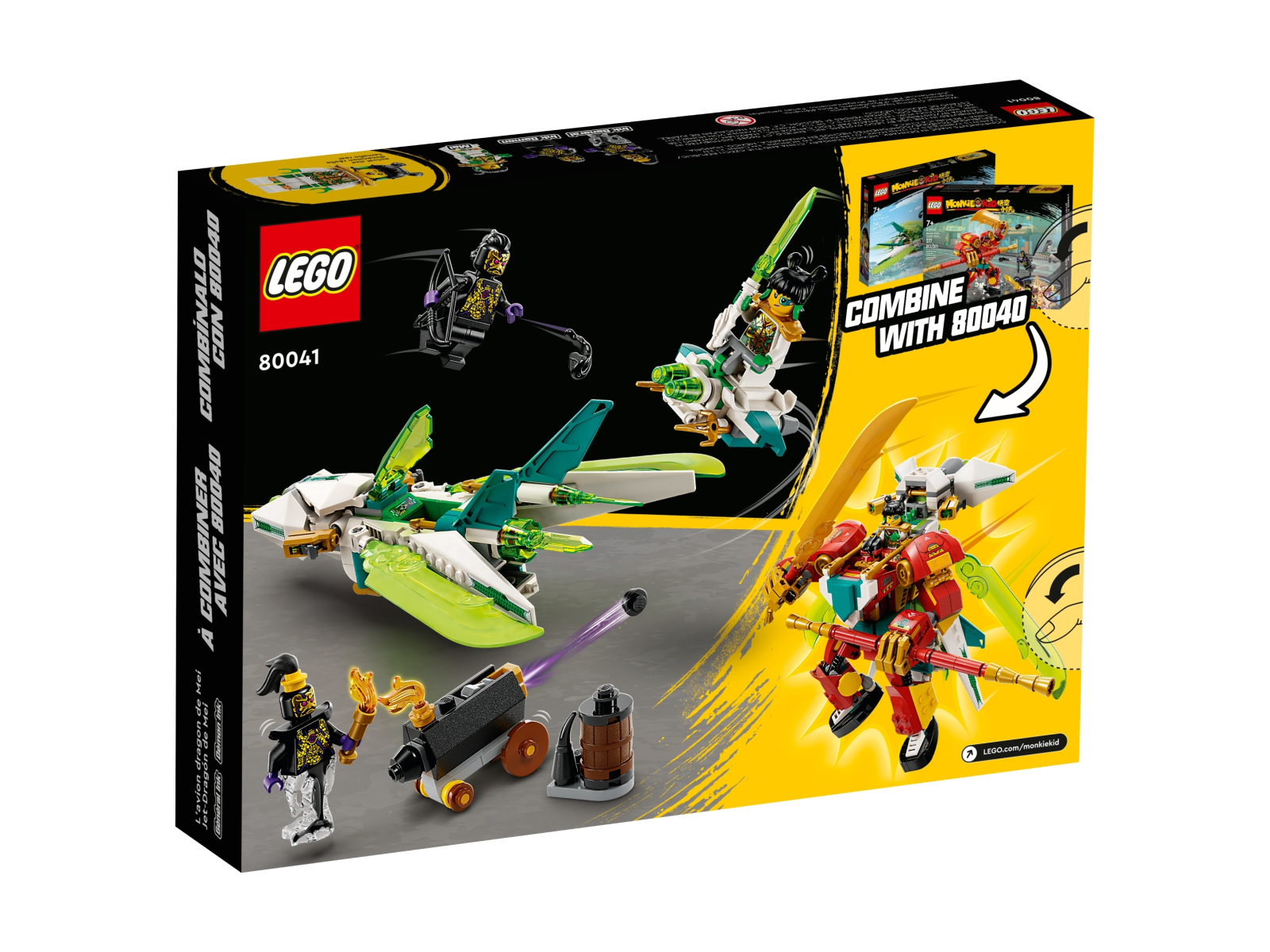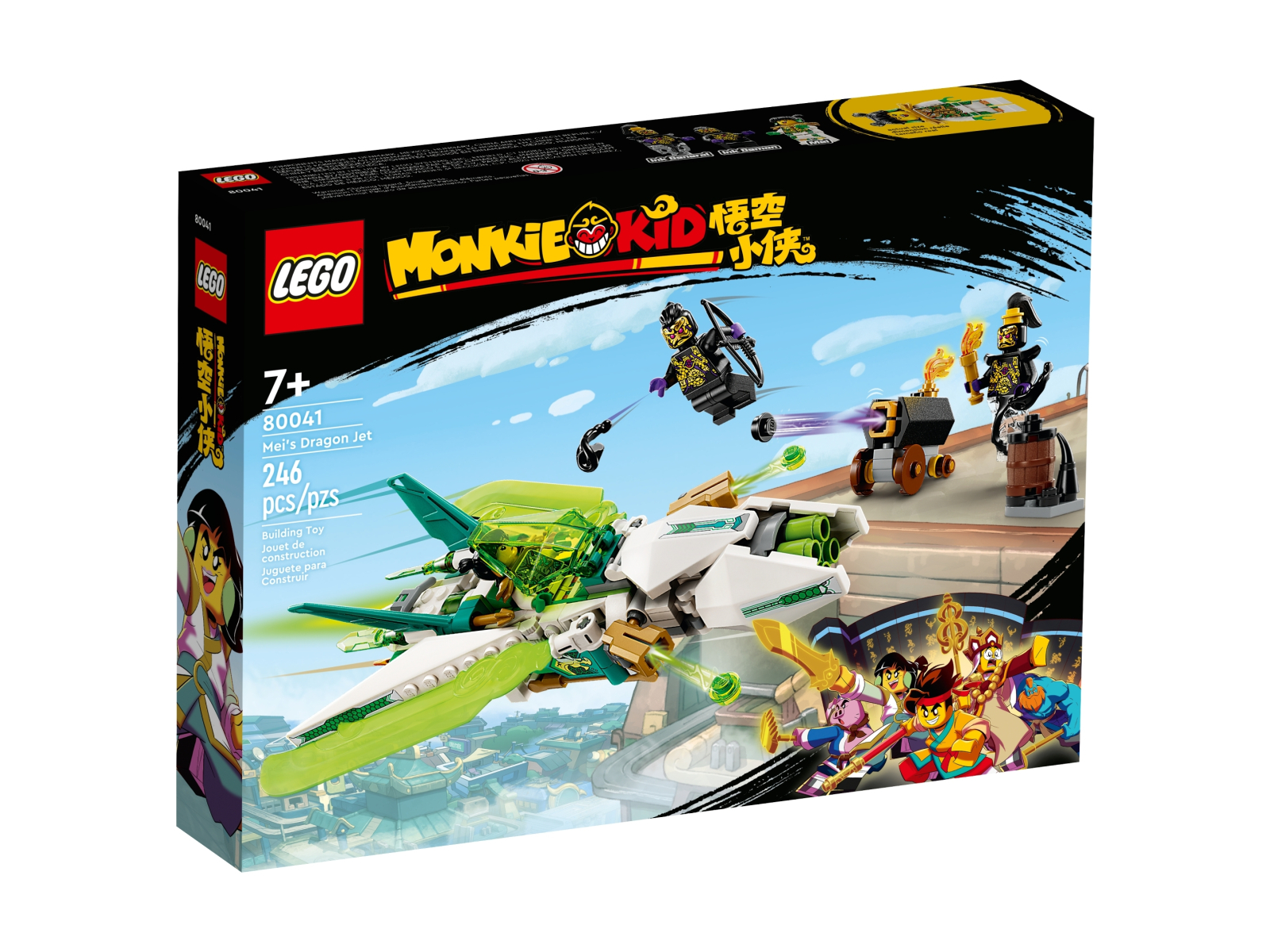 - Zestaw LEGO® Monkie Kid™ (80041) – szczegółowy model smoczego odrzutowca Mei z odczepianym samolotem i akcesoriami zapewni wiele godzin zabawy pobudzającej wyobraźnię