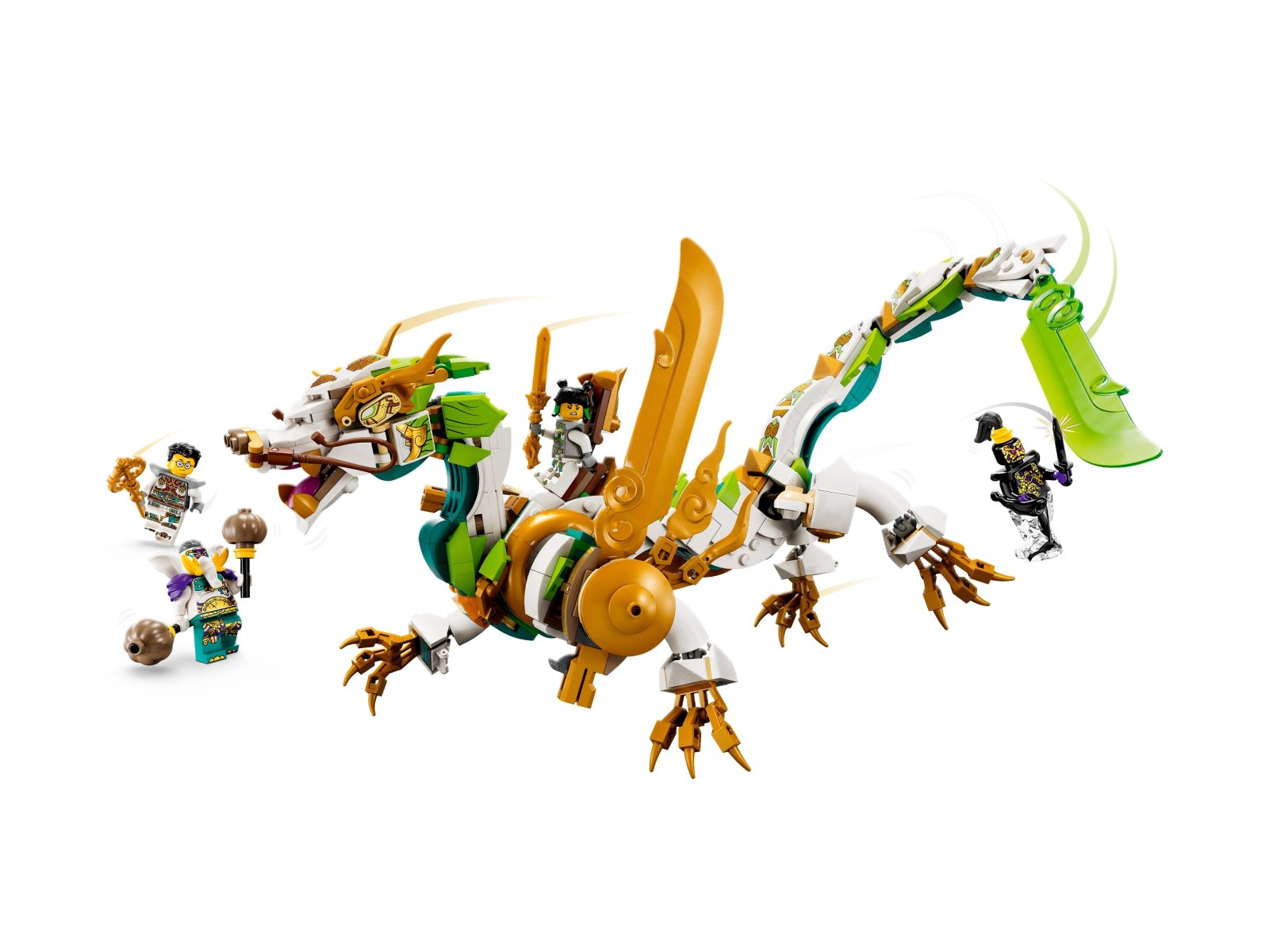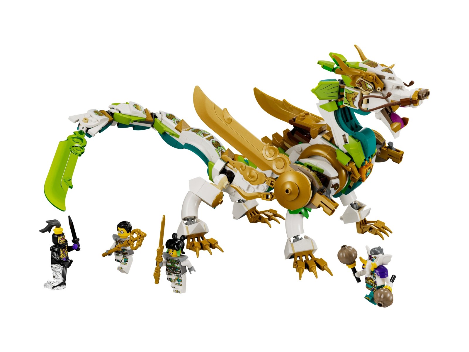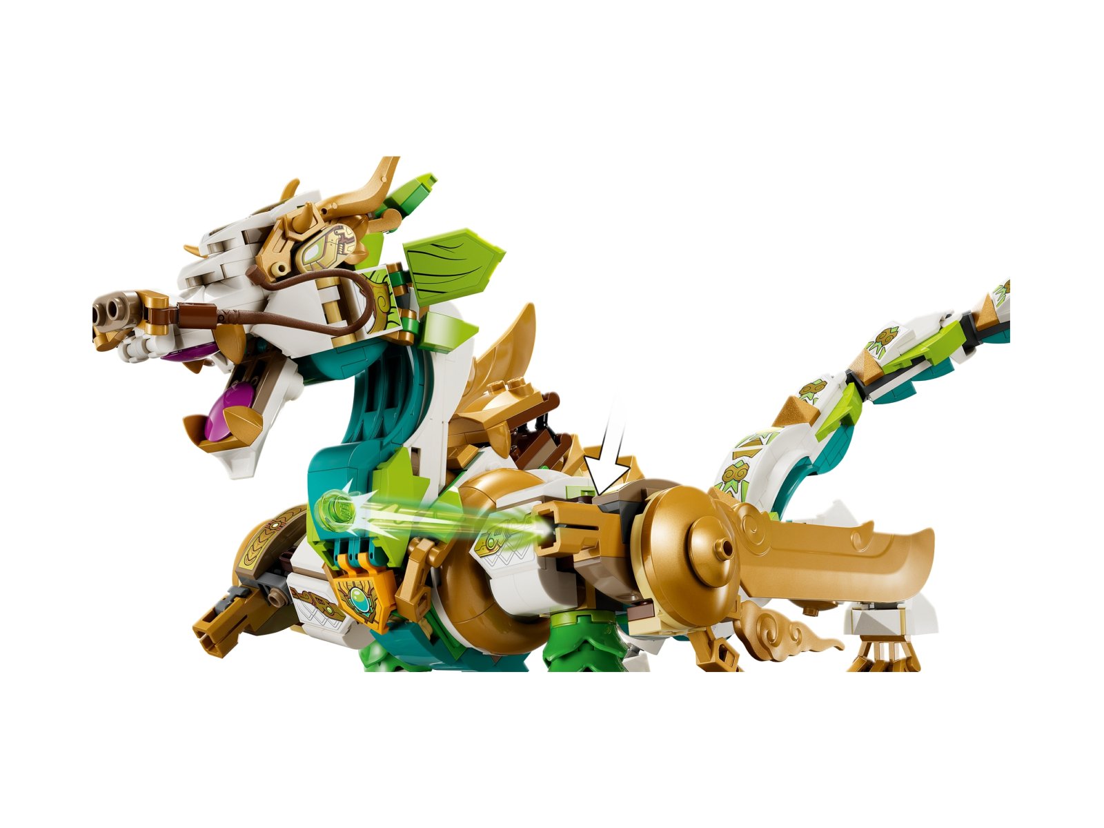 - Ruchomy smok — stwórz legendarnego strażnika Mei z czwartego sezonu serialu telewizyjnego LEGO® Monkie Kid™ z ruchomą szczęką, głową i nogami, ruchomym ogonem z ostrzem, miotaczami na skrzydłach i siodłem