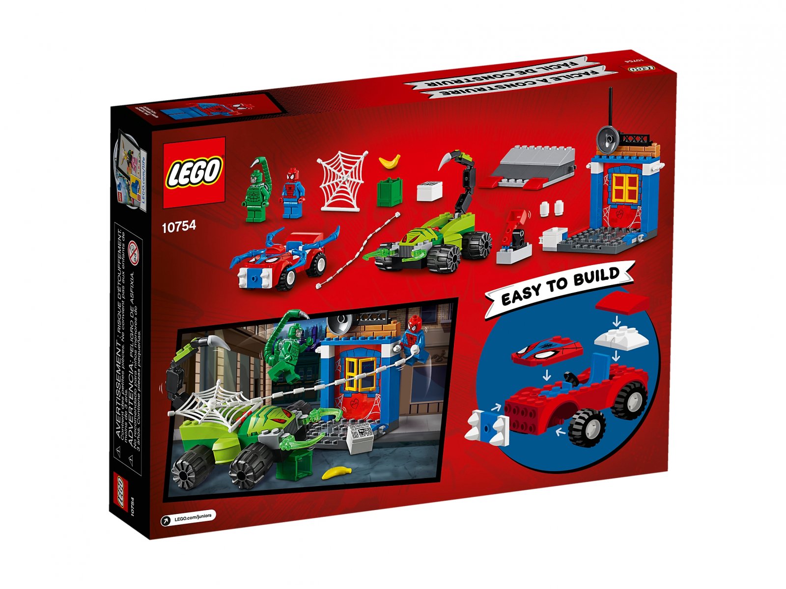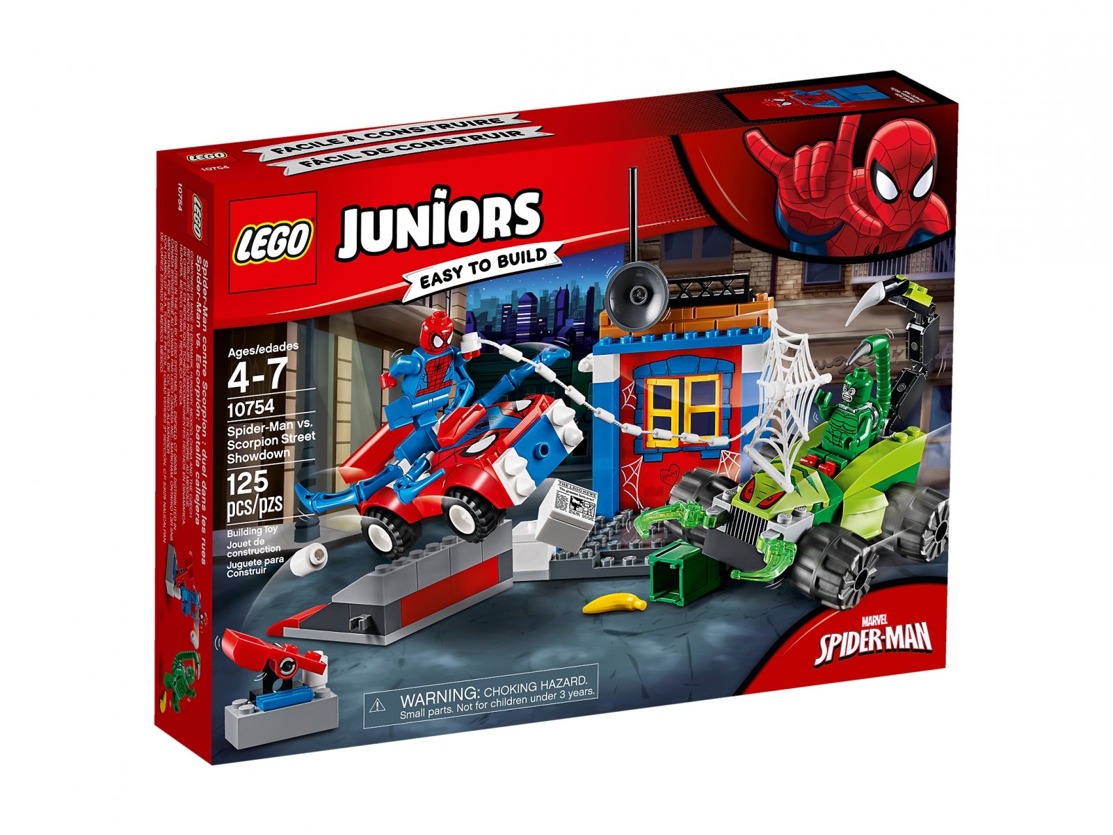 Spider-Man ściga Skorpiona za kierownicą łatwego do zbudowania Spider-samochodu z ruchomymi pajęczymi nogami. Zapnij pasy i ruszaj! W zestawie Spider-Man kontra Skorpion znajdziesz także samochód Skorpiona z ruchomymi leszczami i ogonem, a do tego ścianę zaułka z otwieranym oknem i rampą łączącą dwa przejścia, wielką pajęczynę, elastyczną pajęczą „nić” oraz katapultę do zbudowania. W tym zestawie znajdują się również proste instrukcje budowania i zabawy. Składanie rozpoczyna się od większych klocków, by mali konstruktorzy poczuli się pewniej. W zestawie 2 minifigurki.