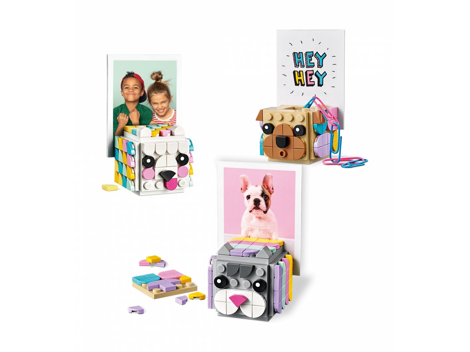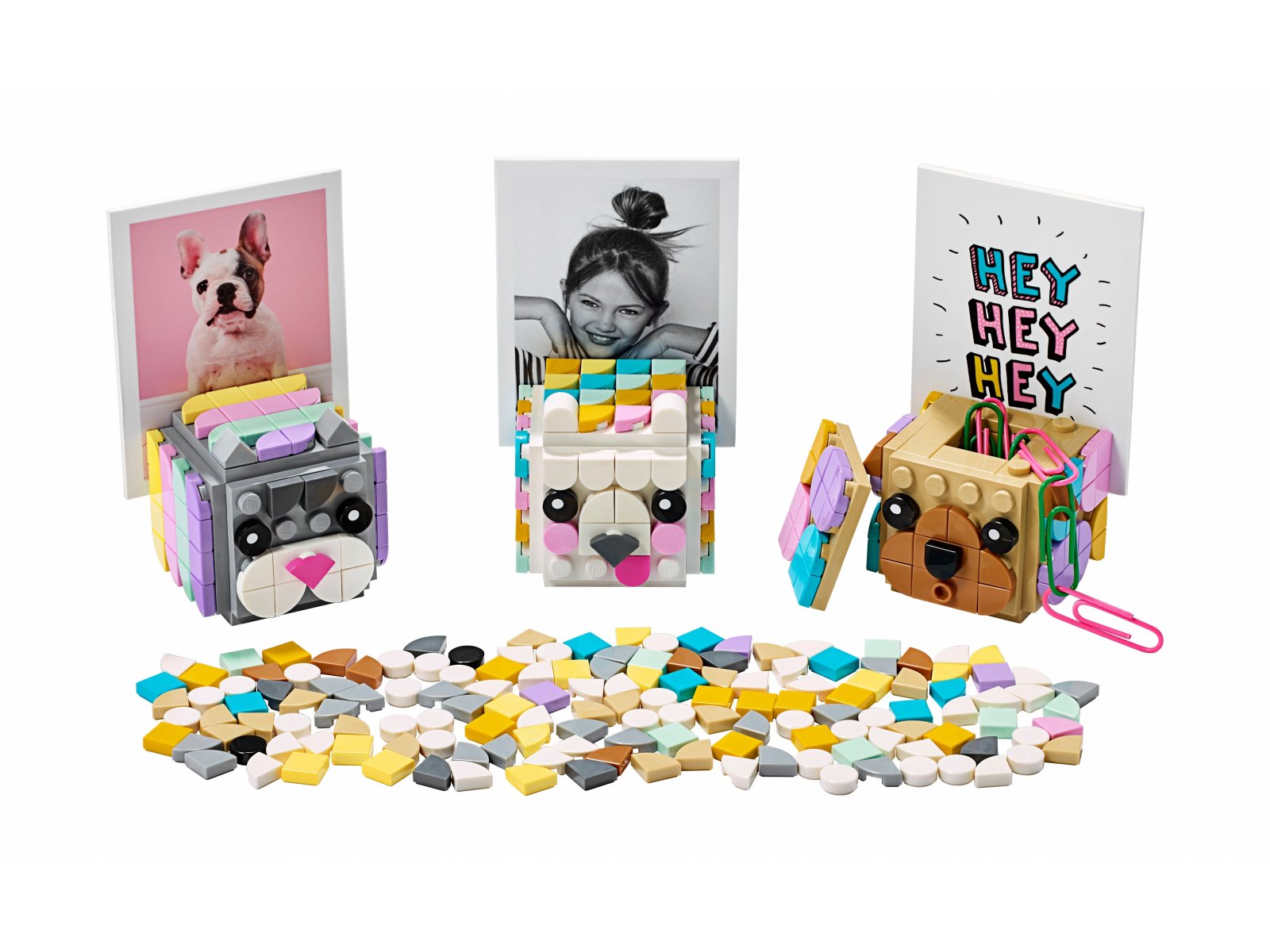 - Zachwyć młodego miłośnika prac ręcznych uroczym zestawem trzech kostek LEGO® DOTS™ (41904) z pyszczkami zwierząt, pokrywkami i podstawkami na zdjęcia. Zabawa zaczyna się od złożenia stojaków na zdjęcia — wystarczy otworzyć pudełko!