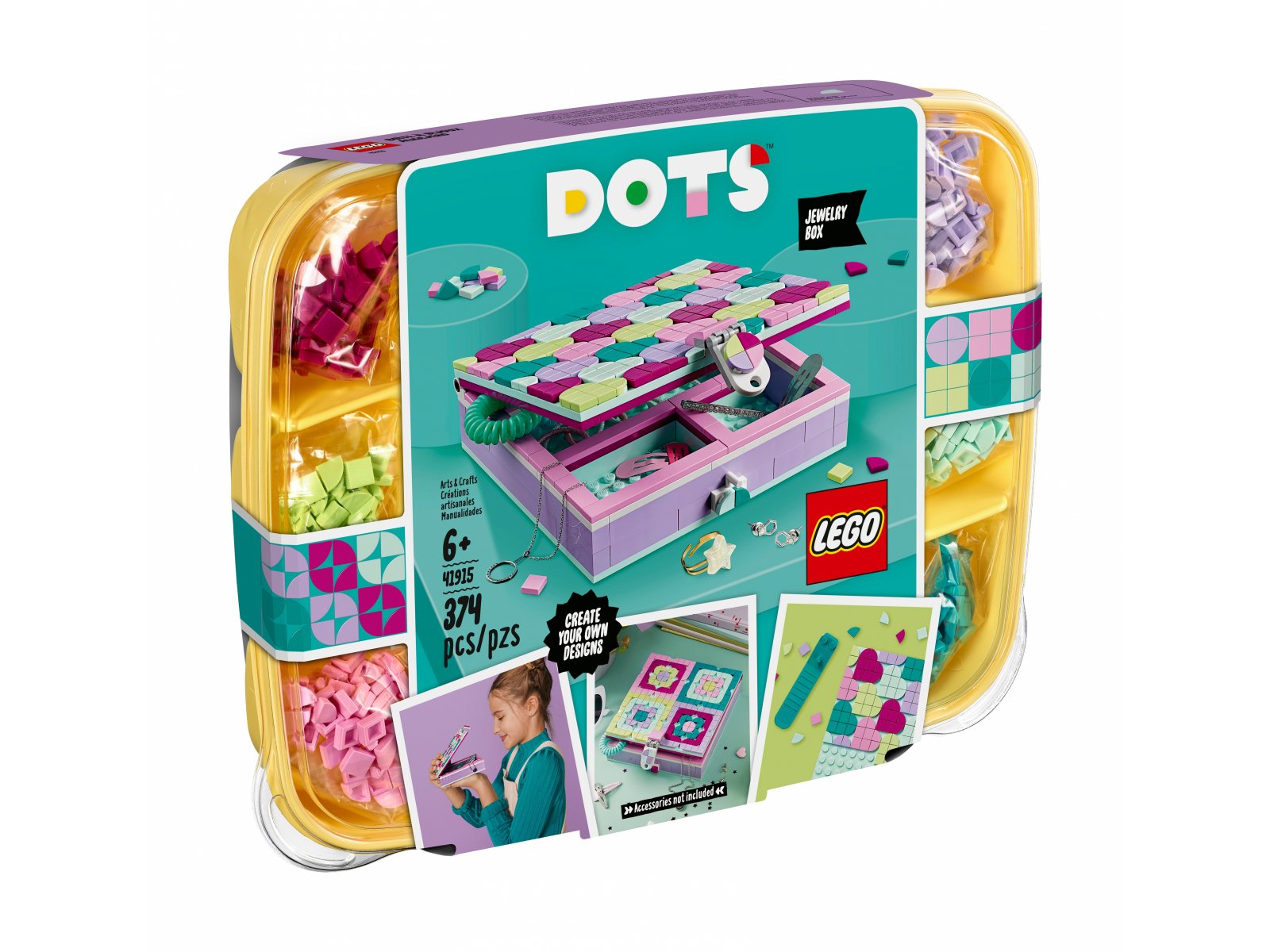 - Zestawy LEGO® DOTS to propozycje niesamowitych prac ręcznych dla dzieci. Ta sprytna szkatułka na biżuterię daje dzieciom inspirujące możliwości swobodnego projektowania, które wzmocnią ich kreatywność i pewność siebie.