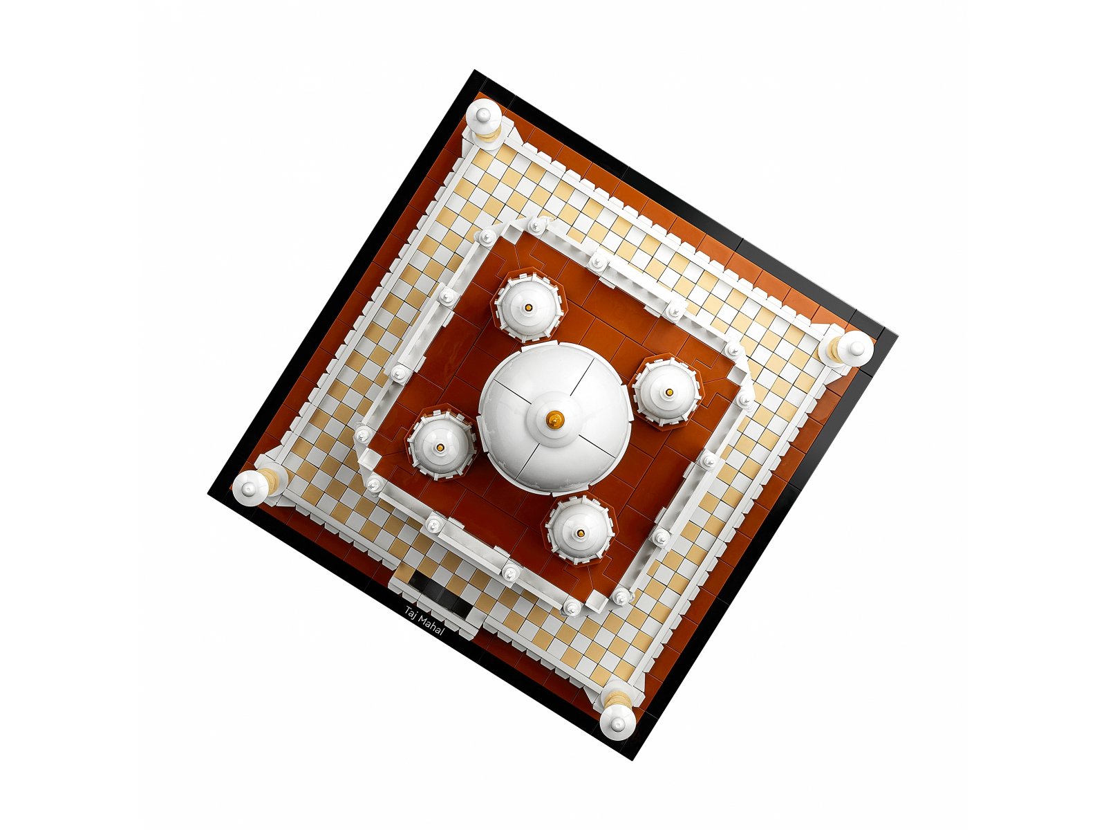 - Centralną komnatę można wyjąć, odsłaniając w ten sposób znajdującą się pod nią kryptę. W zestawie znajduje się także klocek LEGO® z napisem „Taj Mahal”, który zwieńczy tę zdumiewającą ozdobę.