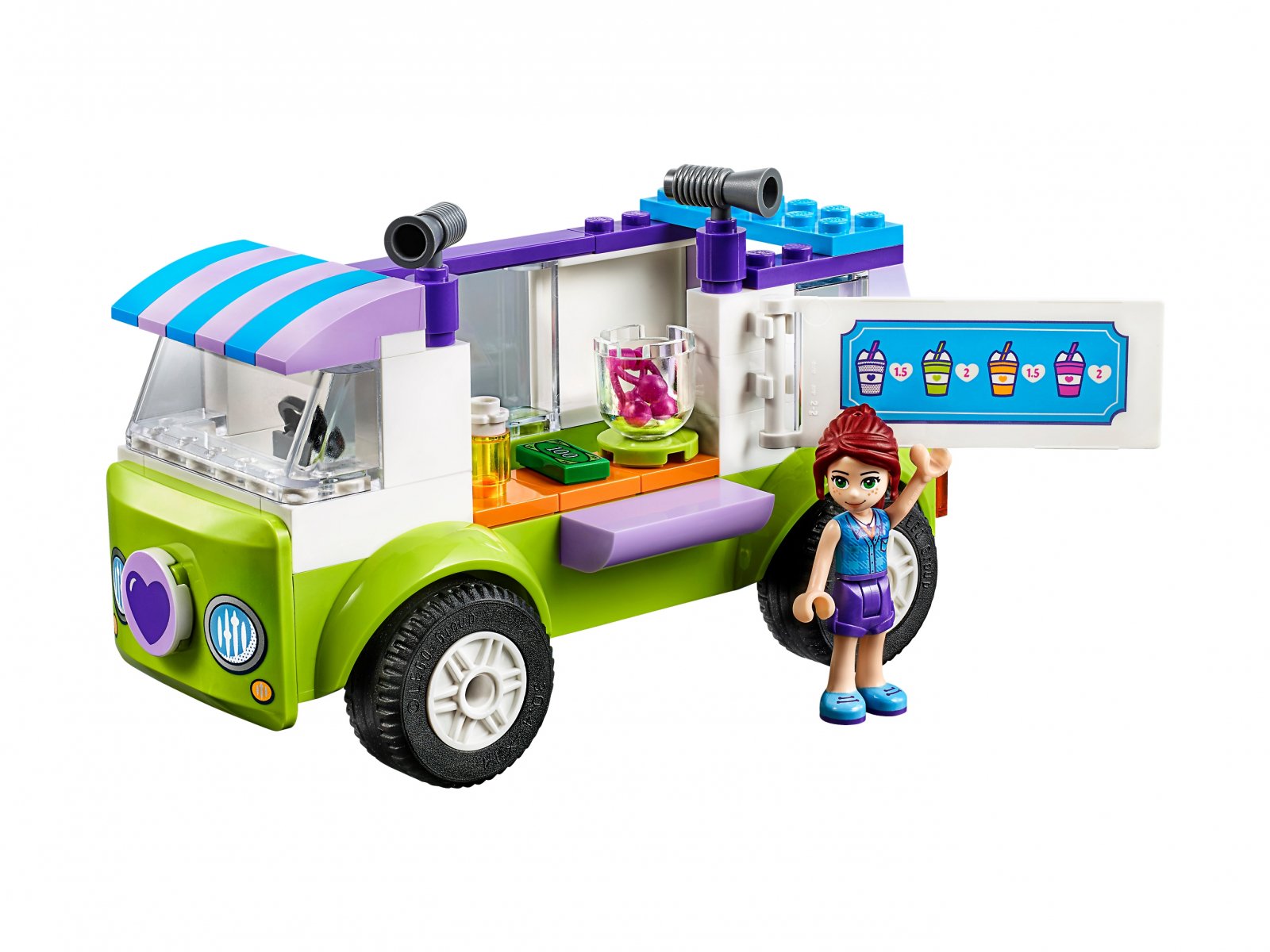Ze smakołykami z ekologicznego straganu Mii każdy dzień zacznie się wspaniale. Łatwa do zbudowania furgonetka ma podwozie ułatwiające montaż, otwierany bok i obrotowy szyld. W zestawie jest też karuzela, kilka osobnych skrzynek i stół piknikowy z siedzeniami. Ta kolorowa zabawka zawiera też proste wskazówki budowania i zabawy. Składanie rozpoczyna się od większych klocków, by mali konstruktorzy poczuli się pewniej. W zestawie minilaleczka oraz figurka króliczka.