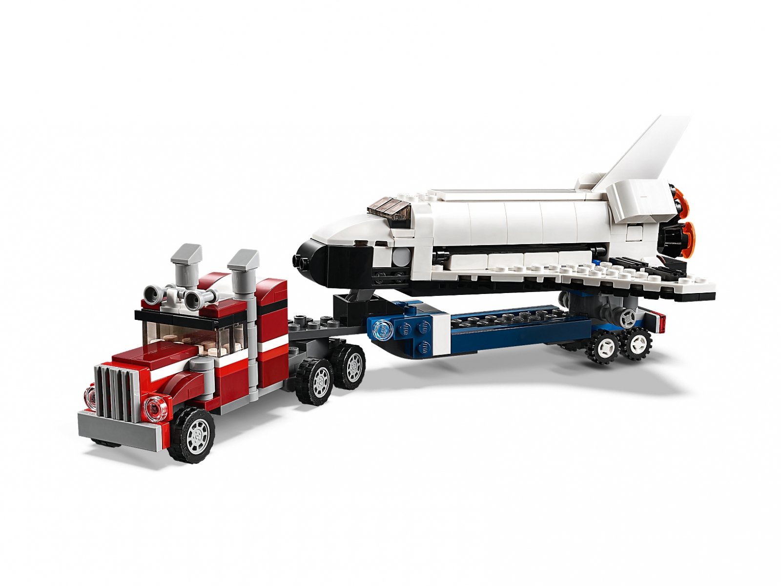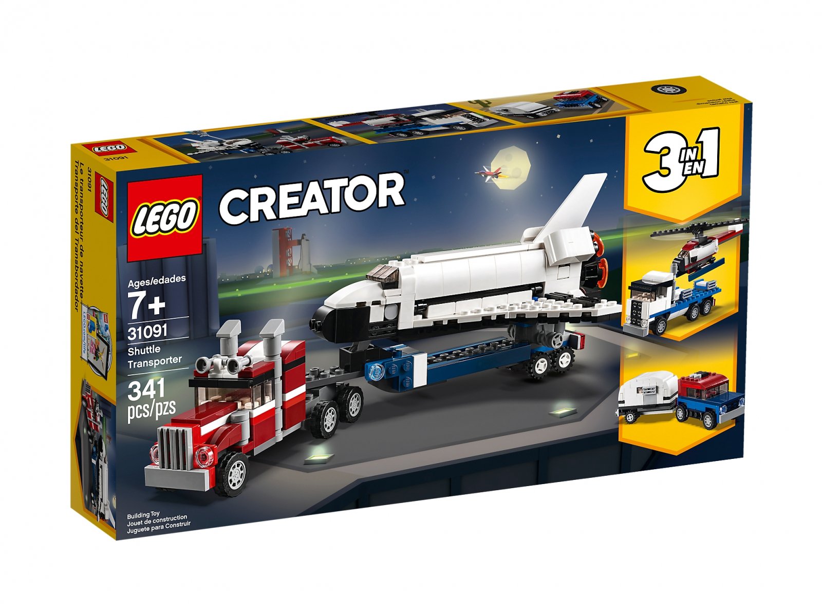 - Zestaw LEGO® Creator 3 w 1 umożliwia zbudowanie trzech różnych modeli. Zbuduj transporter promu kosmicznego, a potem przebuduj go na fajny transporter helikoptera lub samochód z przyczepą kempingową.