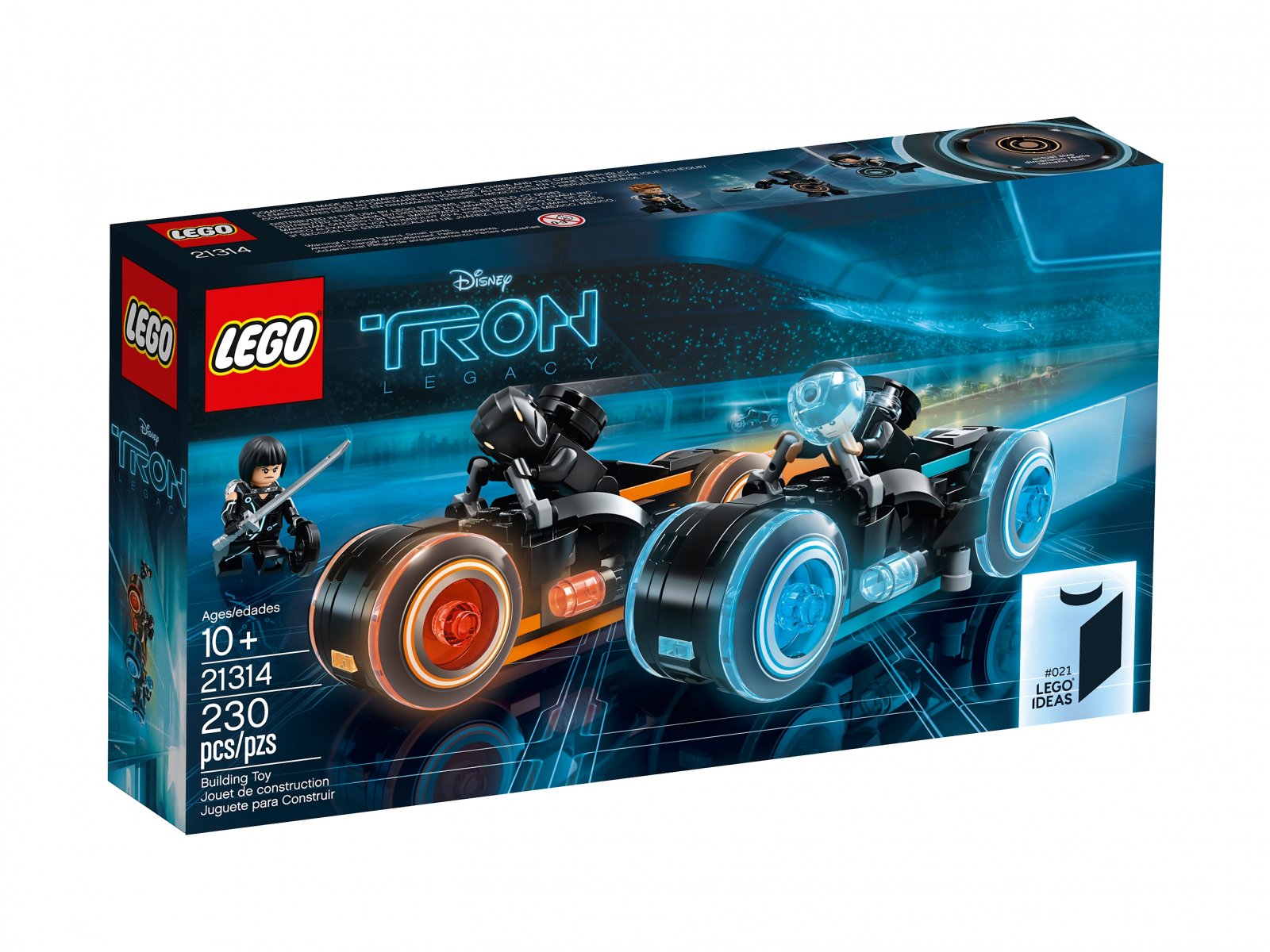 Futurystyczny zestaw LEGO® Ideas 21314 LEGO® TRON: Dziedzictwo wspaniale nadaje się do budowania, zabawy i ekspozycji na półce. Zestaw zawiera dwa światłocykle z siedzeniami dla minifigurek i przezroczystymi klockami przedstawiającymi światło oraz podzielną siatkę TRON z miejscami, do których można przymocować pojazdy. Użyj siatki jako podstawki do ekspozycji światłocykli lub podziel ją na pół, by odtworzyć scenę pościgu z filmu Disneya „TRON: Dziedzictwo”. Możesz też urządzić na siatce walkę na dyski identyfikacyjne między trzema minifigurkami LEGO z zestawu — Samem Flynnem, Quorrą i Rinzlerem. Ten zestaw konstrukcyjny zawiera broszurę z informacjami o fanie, który stworzył zestaw, oraz projektantach LEGO, którzy nad nim pracowali, a także fakty na temat filmu Disneya „TRON: Dziedzictwo” i jego głównych bohaterów.