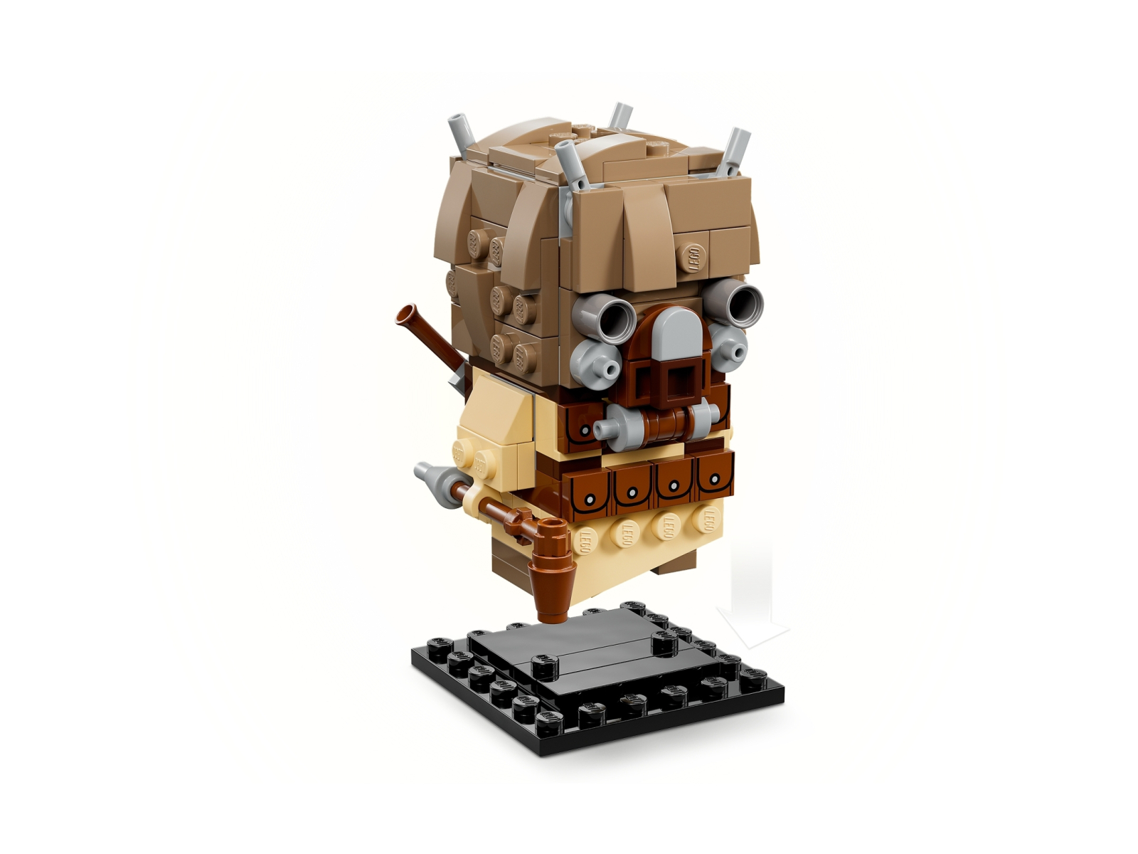 - Tuskeński rabuś w stylu LEGO® BrickHeadz™ – zestaw LEGO® BrickHeadz Tuskeński rabuś (40615) z postacią w stroju z filmu „Gwiezdne Wojny: Nowa nadzieja”, kijem gaffi i blasterem