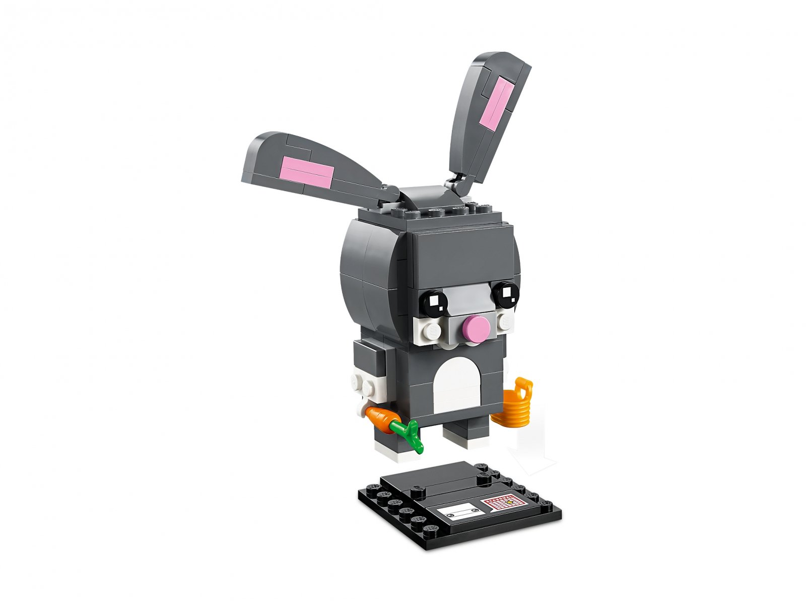 - Zajączek wielkanocny LEGO® BrickHeadz™ do zbudowania ma dekorowane oczy, ruchome uszy oraz odczepianą marchewkę i koszyk.