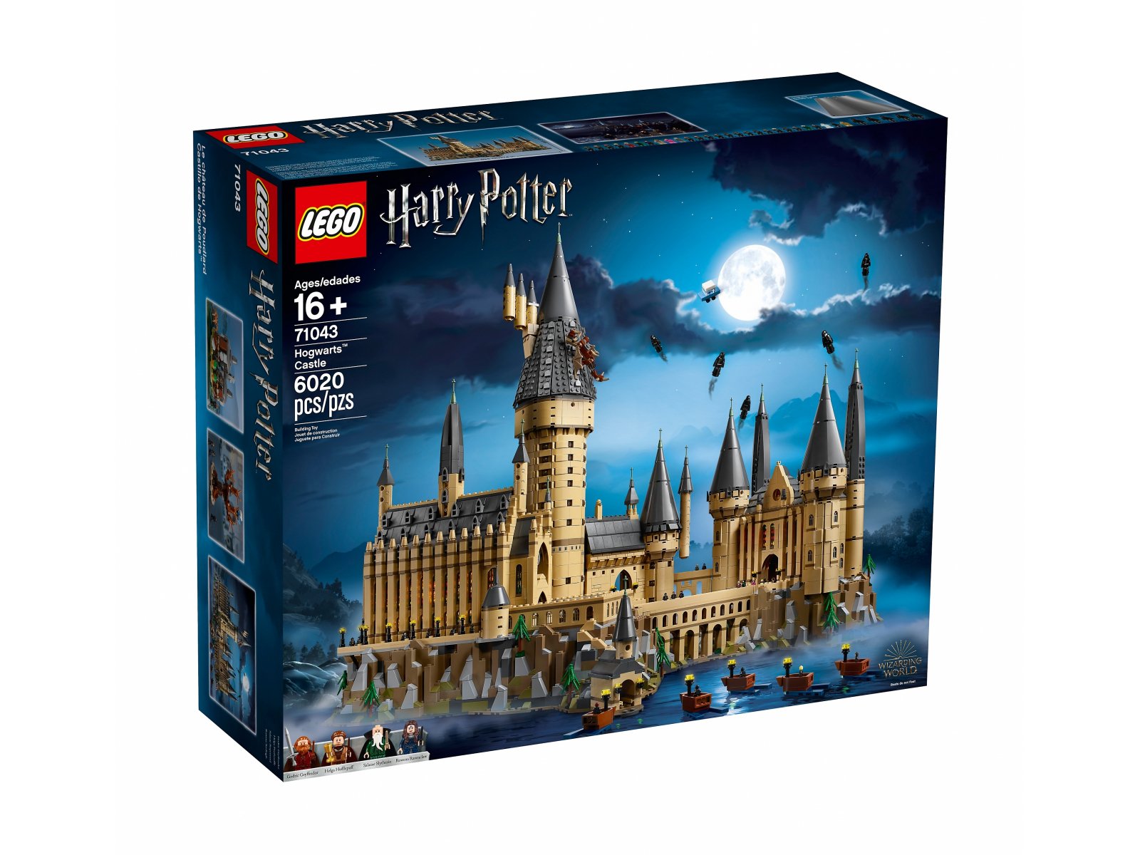 - W komplecie modele zamku Hogwart™, chaty Hagrida™, wierzby bijącej™ i pięciu łodzi w skali mikro.