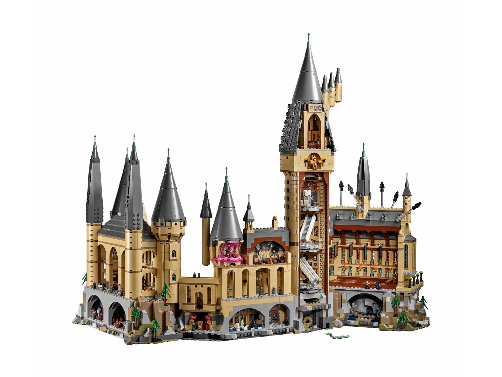 - W zestawie jest też 27 mikrofigurek: Harry Potter™, Ron Weasley™, Hermiona Granger™, Draco Malfoy™, Albus Dumbledore™, profesor Snape™, profesor McGonagall™, Remus Lupin, profesor Dolores Umbridge™, Argus Filch, Lord Voldemort™, Bellatrix Lestrange, troje uczniów z każdego z czterech domów, dwie figury szachowe i posąg Architekta Hogwartu™ oraz pięciu dementorów, a także figurki pająka Aragoga i bazyliszka oraz rogogon węgierski do zbudowania.